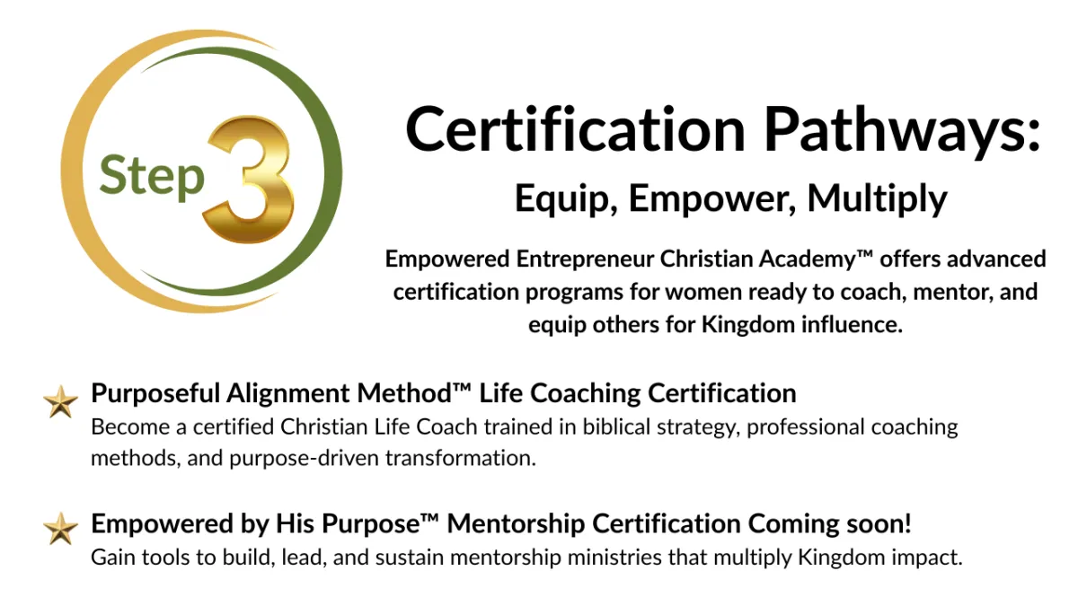 Building confidence as a Mentor is essential not only for your personal growth but also to attract clients/mentees who trust and believe in your ability to guide them. Our new program, Empowered by His Purpose, will teach you powerful strategies that can dramatically increase your confidence and help you become a well sought after Mentor. Join our wait list today! NOTIFY ME